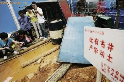 昨天下午5点,记者赶到五一广场地铁施工点。此时,工地已经停工,旁边竖着一块写有“此有古井,严禁动土”的牌子,落款是“长沙市公安局、长沙市文物局”。60岁的工人孙伯如蹲在一边看守机器,他告诉记者,考古人员刚刚才走,并且已经带走了竹简。