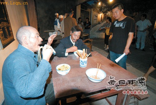老兰州们吃着“香喷喷”的“牛大碗”。本报记者 陈若梦 摄