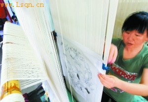 王国英在向记者展示宫毯织造技艺。