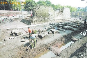 工作人员正在老鼓楼遗址进行发掘工作