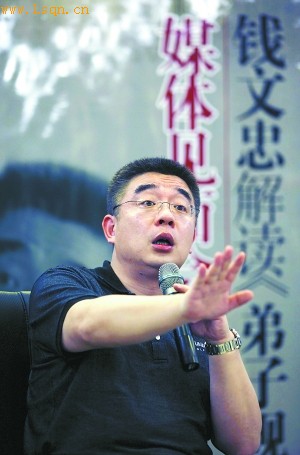 问:《弟子规》播出后,您还会讲蒙学其他内容吗?钱文忠:虽然《百家讲坛》也希望我能够接着往下讲,但我会在一个相当长的时间之内不再上《百家讲坛》。接下来就是好好把《弟子规》和《三字经》落实,我自己跑一些地方去做一线的教育工作。比如年底在上海开班教《弟子规》,每一堂课我都会亲自讲。实际上很多人早就按照《弟子规》来做,比如我刚刚知道,有一批“钱艇”今年报名去玉树支教。我向他们致敬,他们做得比我好。