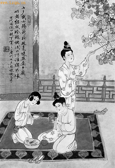 古时风俗图,蛛网乞巧