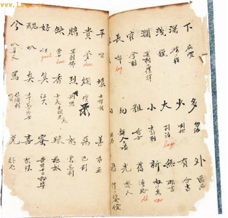 《英语会话音识》中有字的总共有153页,难得的是它是手抄本。整个读本分成六个部分,分别为:一字门、二字门、三字门、四字门、五字门、职事人物门。一字门中为单个中文字及其英语发音的粤语注音,二字门至五字门也以此类推。一字门主要还是一些简单的中文的注音,如“我”念为“挨”,“坐”念为“失当”等等。五字门中的,就是一些简单的单句了。如“为何不早说”念为“屈科那恂士碧”,“我在船有事”念为“挨波地涉吉卑贱”等等。职事人物门中则是一些人的称呼英语发音的粤语注音,如“大班”念为“苏百加估”,“水手”念为“些刺文”,“医生”念为“得惰”等等。从单字到单句,还有称呼的读音,可见这是一本相对比较全面的学习英语的读本了。这本读本是2009年8月份由张仲伟先生捐赠给中山市博物馆的。张仲伟先生是中山市文化界德高望重的老人家,多年来一直关心和支持博物馆事业的发展,近年一共向中山市博物馆捐赠了一百多件(套)文物资料。据他介绍,这本读本是由华侨带回中山乡下,辗转流传到他手中的。通过这本读本,我们可以真切地感受到晚清至民国时期华侨在国外为求生计学习英语的艰辛和勤奋。(余子龙)