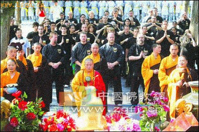 中国佛教新闻网讯 7月4日,7年前皈依少林并被方丈释永信赐法号“释延灯”的美国少林拳法联盟创办人查尔斯·麦特拉率领170多名洋弟子再次归山朝圣。“如果越来越多的西方人能了解到东方文化的圆融和谐、众生平等观念,世界将更加和平。”