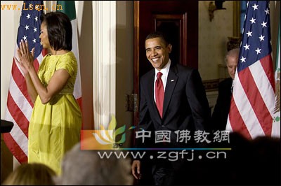 美国第一夫人与英国第一夫人沙拉·布朗在花园中散步