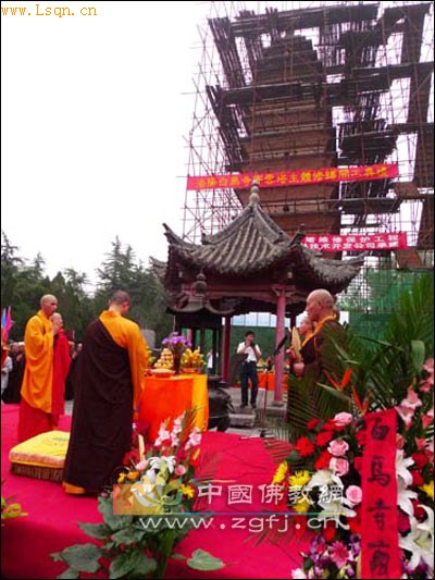 中国佛教新闻网讯 2009年7月8日,河南洛阳白马寺举行齐云塔维修保护工程开工仪式,洛阳有关领导、白马寺方丈及佛教僧俗弟子修建职工等近千人参加了开工仪式。