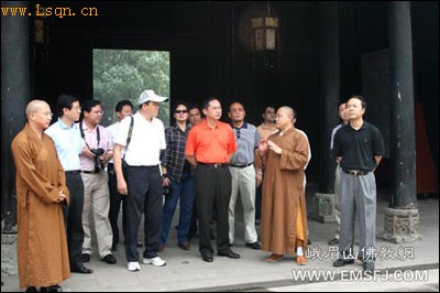 中国佛教新闻网讯 8月20日, 广西省贵港市委书记赖德荣一行30余人在乐山市副市长、乐山市政协主席李留根及峨眉山——乐山风景区管委会常务副主任冯庆川等的陪同下,来到峨眉山报国寺参访,受到报国寺监院昌明法师、知客传灯法师等的热情接待。