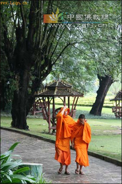 中国佛教新闻网讯 天刚蒙蒙亮,曼春满佛寺的小和尚岩光罕诵完了一个小时佛经,背上书包和同伴一起走向村里的学校。佛爷站在寺庙门口,注视着黄色袈裟在缭绕晨雾中渐行渐远。