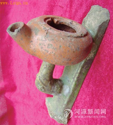 童先生随后带着这件古董找到市收藏家协会会长蒋鸿鉴定。蒋鸿称,他搞收藏鉴赏很多年了,也是第一次见到这种东西。他分析说,这是一件民窑出土的瓷器,是三彩瓷,有黄色、红色、绿色。这件古董是一件油灯。