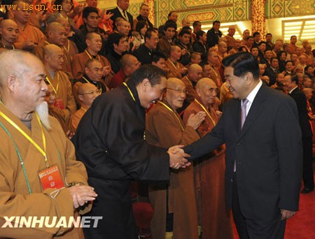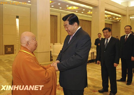 中国佛教新闻网讯 中共中央政治局常委、全国政协主席贾庆林3日在人民大会堂会见了中国佛教协会新一届领导班子成员。贾庆林代表党中央、国务院对中国佛教协会第八次全国代表会议的召开表示祝贺,向全体与会代表及全国各民族佛教信众表示亲切问候。他说,半个多世纪以来,中国佛协始终与党和政府同心同德,风雨同舟,积极协助党和政府贯彻落实宗教工作方针政策,坚持走与社会主义社会相适应的道路,为维护社会稳定、民族团结和祖国统一作出了积极贡献。