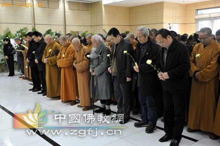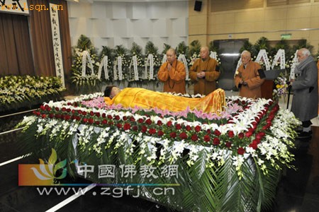 中国佛教新闻网讯 2010年2月26日清晨5时20分,上海市玉佛禅寺的爱普长老在瑞金医院圆寂,世寿九十六,僧腊八十八。爱普长老的法体告别仪式于2月28日下午在龙华殡仪馆银河厅举行。来自上海市民族与宗教事务委员会、上海市佛教协会、上海市国保局、上海市普陀区民宗办、普陀区公安分局、各郊区佛教协会和郊区寺院的代表,以及爱普长老的弟子约200余人参加了告别仪式。