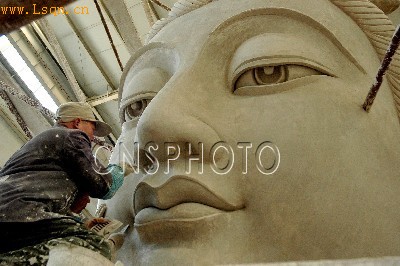 中国佛教新闻网讯 一座20余米高的准提坐观音铜像将落户江苏太湖风景区。近期,河南洛阳一金像公司职工在为该铜像一比一放大样做最后修饰,该铜像将于年内完成制作安装。(稿源:中国新闻网)