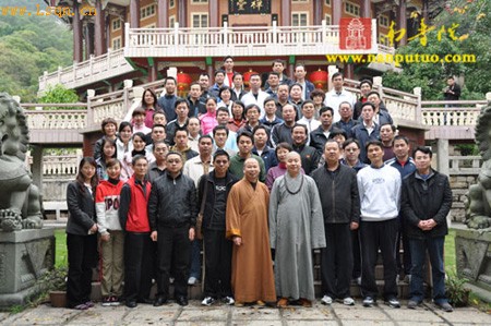 合影留念 近日,福建省厦门大学EDP研修班学员到南普陀寺体验一日禅修生活,受到南普陀寺四众的热烈欢迎。2010年3月7日下午1时30分,南普陀寺方丈则悟法师在讲堂为学员开示。开示会由传明法师主持。 首先,则悟法师对学员们的到来表示欢迎。他表示:坐禅只是僧人日常修行的一部分,以后若有因缘,可以举行短期出家的活动,让大家更能体验僧人的修行生活、更多地了解佛法理念。接着,则悟法师为学员们简单介绍了僧人一天的作息时间、大乘佛教的菩萨道精神理念、禅修对人生事业的帮助等,并以佛教四弘誓愿“众生无边誓愿度、烦恼无尽誓愿断、法门无量誓愿学、佛道无上誓愿成”勉励学员,希望学员回去后,能把佛教自利利他的理念应用于日常工作、管理当中。最后,则悟法师祝大家均得观音菩萨的慈悲加被,今后事业、身体、家庭等一切顺利如意,并欢迎大家再来体验禅修生活。(稿源:南普陀寺)