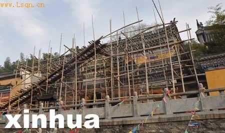 4月3日,湖北省黄梅县五祖寺毗卢殿大修,一名建筑工人在施工。毗卢殿是五祖寺现存最古老的建筑之一,由于年代久远,已成危楼,五祖寺开始对其进行大修。五祖寺位于湖北黄梅县,是佛教禅宗五祖弘忍大师说法道场,也是六祖慧能大师得衣之地,在我国佛教史上占有极其重要的位置,也是著名的旅游胜地。五祖寺作为唐至清时期古建筑,于2006年被国务院批准列入第六批全国重点文物保护单位名单。