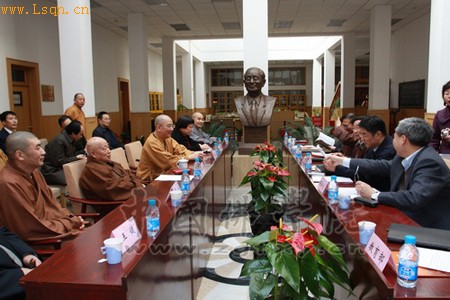 中国佛教协会会长、中国佛学院院长传印长老,中国佛教协会副会长、中国佛学院第一副院长学诚法师,中国佛教协会副会长、中国佛学院常务副院长湛如法师,中国佛教协会王健秘书长,宗家顺副秘书长,卢浔副秘书长,中国佛学院张厚荣副院长,中国佛学院副院长向学法师,副院长兼教务长宗性法师,副教务长广如法师,教务主任理证法师等参加了座谈会。国家宗教局吕晋光司长,薛树琪处长也前来参加了座谈。