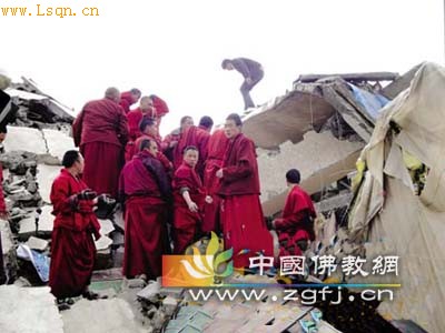 中国佛教新闻网讯 2010年4月15日晚,青海玉树藏族自治州囊谦县公雅寺近200名藏传佛教僧人,自发组织到玉树县搜救幸存者,他们还要按藏民习俗为这次地震中的遇难者超度亡灵。