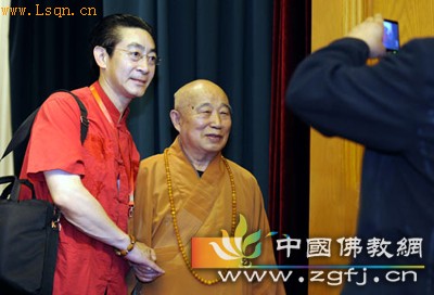 中国佛教新闻网讯 6月21日,中国道教协会第八次全国代表大会在北京开幕。图为列席本次大会的著名演员六小龄童与中国佛教协会会长传印合影留念。