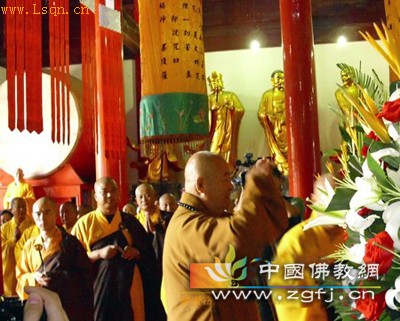 中国佛教新闻网讯 2010年7月9日,佛光山开山宗长星云大师一行,在江苏扬州监真学院院长翁振进的陪同下到宝应县宁国寺参访。宝应县委书记仲生、县长张耀武及相关领导等对星云大师一行的到来表示热烈欢迎。宁国寺两序大众及其信众近千人在山门外迎接星云大师一行。