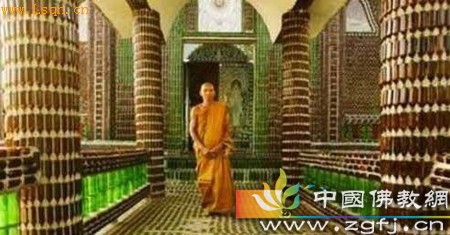 这座“万瓶寺”位于曼谷东北600公里,僧人们从1984年开始用废弃的瓶子装饰僧舍,从而吸引更多的人捐献瓶子建造寺庙。在这座特殊的寺院里,从水塔到游客的盥洗间,从宝塔到佛堂,从火葬场到洗手间都是由喜力牌和象牌啤酒瓶建成的,成为当地一大景观。相传寺院的建造者以前曾嗜酒如命,后皈依佛门并修建了这座寺院,旨在奉劝人们少喝酒。方丈表示只要有更多的瓶子,就将建造更多的“瓶子”设施