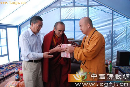 中国佛教新闻网讯 2010年7月29日,受新加坡佛教居士林的委托,兰州市佛教协会会长理因法师一行4人前往青海省玉树县仲达乡邦曲寺,将新加坡佛教居士林募集的18万余元人民币转交给了该寺寺主昂卡江才仁波切。