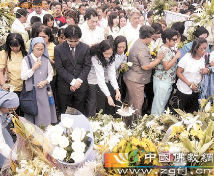 中国佛教新闻网讯 据马来西亚《光华日报》消息,2010年8月31日,菲律宾在首都马尼拉市中心基里诺大看台,为“8·23菲律宾劫持香港游客事件”遇害港人举行了佛教和天主教联合追思会,中国政府官员出席仪式。
