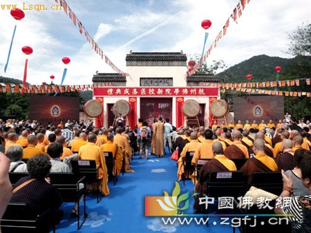 中国佛教新闻网讯 2010年9月4日上午,浙江省杭州佛学院新校区落成典礼在灵隐景区举行。国家宗教事务局副局长张乐斌致词,中国佛教协会副会长湛如法师宣读中国佛教协会会长传印长老贺词。省、市领导盛昌黎、王国平、孙忠焕、董建平,浙江省委统战部部长汤黎路、浙江大学原党委书记张浚生,中国佛教协会副会长觉醒法师、中国佛教协会副会长道慈法师等出席典礼。