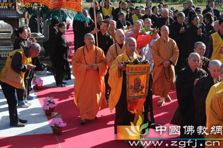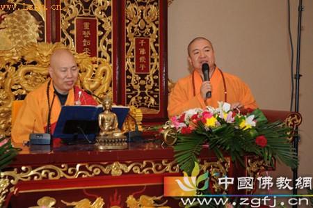 净觉寺方丈本英法师向信众介绍大安法师