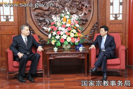 中国佛教新闻网讯 2010年9月20日,国家宗教事务局蒋坚永副局长会见了到访的美国乔治城大学董事会主席保罗·塔利亚布一行。双方回顾了签署备忘录以来的合作成果,蒋坚永副局长对乔治城大学在推动中美宗教、文化和教育领域的交流与合作做出的努力和贡献表示了高度赞赏,并对进一步交往进行了探讨。