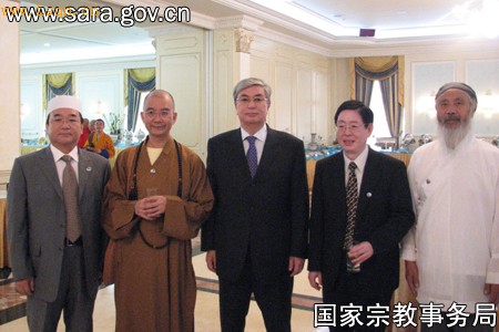 哈萨克斯坦上议院院长托卡耶夫(中)会见中国宗教代表团