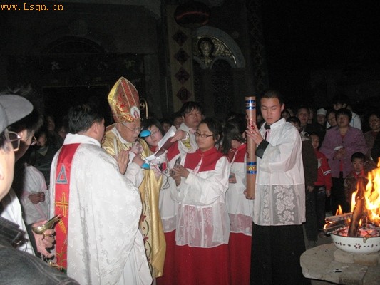 主教在圣道礼仪证道时说:主基督复活的史实给我们启示了“必须经历苦难,才能获得光荣”的真理。近来我常常默想这个主题,想到80年代初期,教会刚刚恢复,主教神父才走出牢狱,教友们有了点信仰自由,大家可以步行几十里路去望弥撒、过瞻礼,信仰的心火多大呀!这是经历“文革”之后大家信仰的“复活”。不经历艰难,我们的信仰就有危险。安逸、富贵、贪图享受会丧失信仰。只有跟着耶稣走苦路,才能获得复活的喜乐和光荣。今天世界面临诸多灾难:旱灾、水灾、风灾、雪灾、地震、不安全事故、恐怖事件等等,政界和社会上从人际关系和人与自然的关系中找原因,我们应从信仰的角度去反思,在大难面前,人们会不禁的找寻天主,回归信仰。如今教廷遭到责难,教会在各地受到迫害,“不要怕,只管信”!走苦路是必然的,因为主也没有避免,但日后的光荣和幸福也是必然的!主真复活了,阿肋路亚!主真复活了,不要怕!