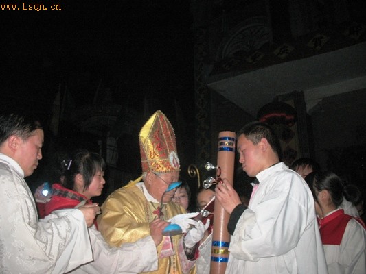 礼仪由烛光礼、圣道礼、圣洗礼、圣祭礼四部分组成。李镜峰主教主持了整个礼仪,两位神父襄礼。