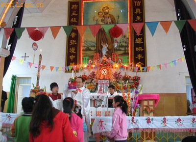 4月3日周六,举行了隆重的复活前夕守夜礼,由本堂方会敏神父主祭,赵神父共祭,同时有大部分教友举行了修和圣事。当天晚上,有5位慕道者接受了洗礼,成了天主的“家人”。