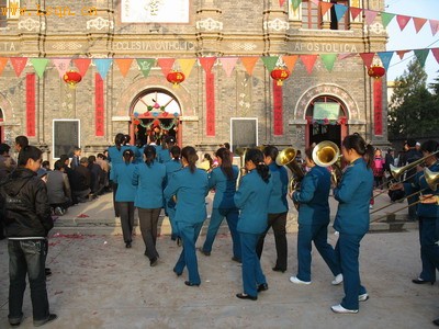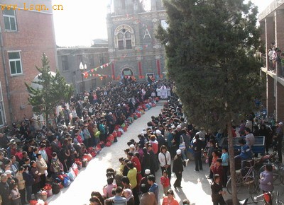 4月4日复活主日,阳光明媚,气候宜人,乐队奏起了“上主已复活”的圣歌,游行队伍从堂院内列队前行进入圣堂。下午4点举行了圣体降福,同时两位神父降福了食物、药品、种子、车辆、房屋等。