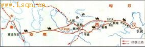 线路:一条横穿欧亚大陆的著名古代陆上商贸通道,长安→河西走廊→今新疆境内→葱岭→大秦。