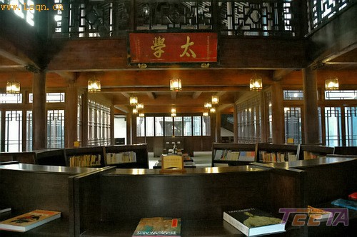 书院坐北朝南,半回廊二层硬山式古建筑群。主楼为图书馆,收藏有文化、社会科学、艺术、休闲旅游等方面的图书和杂志可供阅览,并设有电子阅览室、讲堂、书画、教室等。