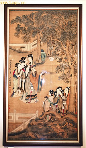 居住在法国巴黎的法籍华人曹先生藏有一幅明代唐寅的绢画。此画高近200厘米,宽100厘米。画中一位贵人和10个仕女,在春光明媚的花园里戏蝶。园内梨花似雪,空中蛱蝶飞舞,贵人神态不俗。画的落款是:吴郡唐寅。下面盖有“南京解元”印章。作画的时间是:正德庚辰(1520年)秋九月。此外,画上还有好多位收藏者盖的印章。在苦苦揭秘这幅名画过程中,收藏者在万里之外偶然发现唐寅一首藏诗,与名画可谓绝配。经查,此诗竟来源于丹阳孙氏家谱。