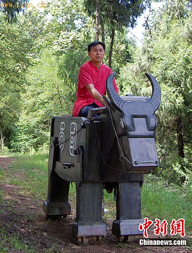 据悉,何多现新造的制“木牛流马”长2.08米,高1.4米,自重230斤。腹中可载420至450斤大米,后肢可以前后屈膝,以手推或牵为动力,可以行走在乡间小路,还可爬坡上行。