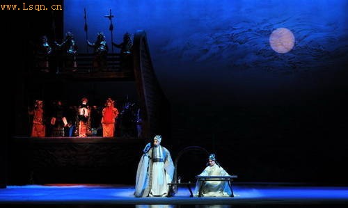 《赤壁》塑造了一部华美、韵美、境美的神奇京剧景观。写意之处,一桌两椅几段唱、出将入相两道门的传统程式幻化在虚虚实实的舞台上。而写实方面,无论是“矢箭如蝗”营造的视觉冲击的,还是巨型战船打造的“无敌舰队”、无论是金碧辉煌的铜雀盛景、还是气势雄浑的“百面旌旗画东风”,都给观众留下了极为深刻的舞台印象。而火烧赤壁一幕更是在台上还原了火借风势,赤焰千里,江面连成火海一片的磅礴景象。另外,全剧中180余套的华服霓裳和集合京剧各家流派之所长的“舌战群儒”联套唱腔让诸葛亮、周瑜、曹操各表胸怀,老生、小生、花脸同时开唱,旋律优美,韵味悠长。真可谓是做到了貌美如画音绕梁。