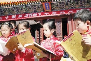 (记者刘平 摄影赵建伟)昨天,“纪念孔子诞辰2561周年祭孔大典暨乐舞仪礼活动”在天津文庙举行。上至耄耋老人、下至初学幼童都赶到文庙在“全球同祭孔”之日表达对孔子的崇敬之意。