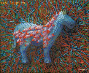 商报:从绘画语言上看,“编织系列”作品在艺术表现形式上别出心裁,为何使用这样的处理方法?