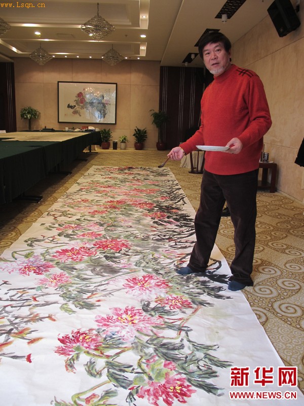 此次展览将展出何水法先生的近80幅作品,大都是首次与观众见面,其中有三分之一今年新作。在众多作品中,最值得期待的是何先生春节期间创作的《洛神春赋》,画中66朵姿态各异的牡丹或低首含羞或吐蕊盛放,在长7.8米、宽2米的大画纸上极尽喧妍。