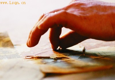 装裱师的手酷似拿着锈花针。