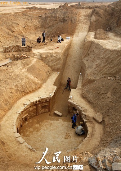 人民网洛阳4月8日电 4月6日,经过一个多月的考古发掘,洛阳市文物工作队对位于河南洛阳孟津县平乐镇新庄村的唐代墓葬考古发掘工作基本结束。据介绍,这是一座唐代晚期壁画墓葬,独特的穹顶圆形形制在洛阳市发现的同一时期墓葬中比较罕见;从墓葬的规模及现场出土的文物可初步断定,该墓葬的墓主人地位较高,应为唐代晚期贵族墓葬。