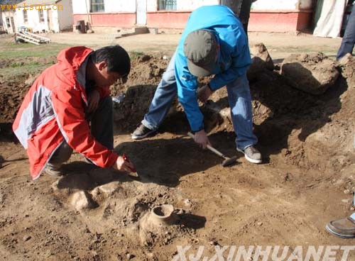 经新疆远方旅游公司申请,自治区考古所于4月29日—5月1日,在阿勒泰地区和富蕴县文物局的配合下,对富蕴县可可托海国家地质公园停车场建设区域内的县级文物保护单位“哲勒巴尕什墓地”中的墓葬进行了抢救性考古发掘,出土古陶罐一个,现已带回自治区考古所做进一步研究。