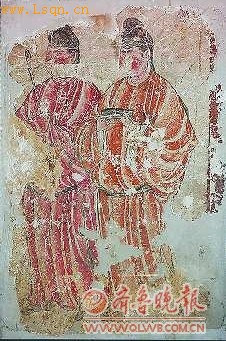 其中之一 红衣男装仕女图壁画高119.3厘米,宽79.1厘米 国家一级文物