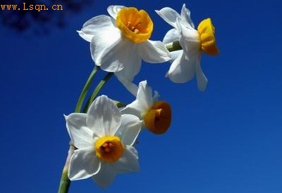 水仙花雅称“凌波仙子”,这雅号源于曹植[注: 曹植 (192~232),三国时魏国诗人,文学家。沛国谯(今安徽省亳州市)人,字子建,是曹操与武宣卞皇后所生第三子。曹植才华横溢,]《洛神赋》中有关洛水女神的传说。相传宓妃因不能与自己所爱的人结为伉俪而溺于洛水成仙,多情的诗人于是借其一缕芳魂,把湘衣缥裙的洛河女神喻为冰肌玉骨的水仙花。在群芳谱中,水仙花是最为诗人钟爱的名花之一,宋代杨万里[注: 杨万里(1127-1206)字廷秀,号诚斋,吉州吉水(今属江西)人,二十四年(1154)进士,授赣州司户参军,调零陵丞。]《水仙花》诗云:“韵绝香仍绝,花清月未清。天仙不行地,且借水为名。”明代李东明也写道:“淡墨轻和雨露香,水中仙子素衣裳。”而清末女杰秋瑾《水仙花》诗更脍炙人口: