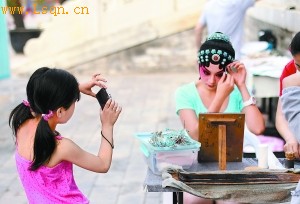 昆曲[注: 昆曲是中国古老的戏曲声腔、剧种,发源于14、15世纪苏州昆山曲唱艺术体系,揉合了唱念做表、舞蹈及武术的表演艺术。原名“昆山腔”或简称“昆腔”,清代以来被称为“昆曲”,现又称为“昆剧”。]演员的装扮吸引了一名小朋友的目光。本报记者 方非摄