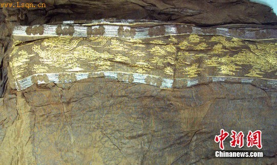 陕西省[注: 西省 拼音: 解释: 1.汉永乐宫之司署?o掌管宫内罪罚。 2.中书省的别称。 3.陕西省西安市的俗称。-xisheng]考古研究院总工程师杨军昌6日向中新网记者透露,在法门寺唐代地宫出土的皇室供奉700余件丝锦织品中,其工艺多采取印花贴金、描金、捻金、织金等手法。经专家研究发现,过去称之为的“捻金线”应称为“缠金线”,这一新的研究成果,反映唐代丝织工艺的最高水平。