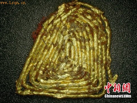 图为保存完好的唐代缠金线。 图据陕西[注: 陕西省-陕西省,简称陕、秦。省会西安。位于中国内陆腹地黄河中游。跨黄河中游和长江支流的汉江,嘉陵江上游,陕西省地处中国内陆中心位置,中华人民共和国大地原点就在陕西省泾阳县境内。]省考古研究院