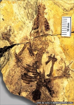 罗哲西博士[注: 博士是教育机构授予的最高一级学位。如某科系哲学博士(PhD),理学博士(DSc/ScD),文学博士(DLitt),教育博士(EdD)。]介绍说,“这种侏罗纪动物的牙齿具备了真哺乳亚纲动物的所有牙齿特征。特别是,真哺乳亚纲动物拥有三颗臼齿,五颗前臼齿。这是与后哺乳下纲动物的主要区别之一,后哺乳下纲动物拥有四颗臼齿,三颗前臼齿。根据牙齿的不同点,我们将它归类于真哺乳亚纲动物。此外,它前肢和腕骨也显示了真哺乳亚纲动物的特点。它们完全没有有袋动物的各种重要特征。”